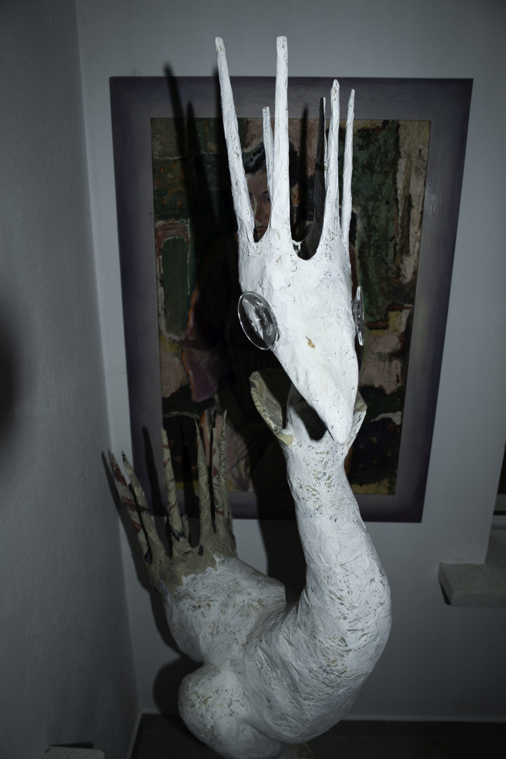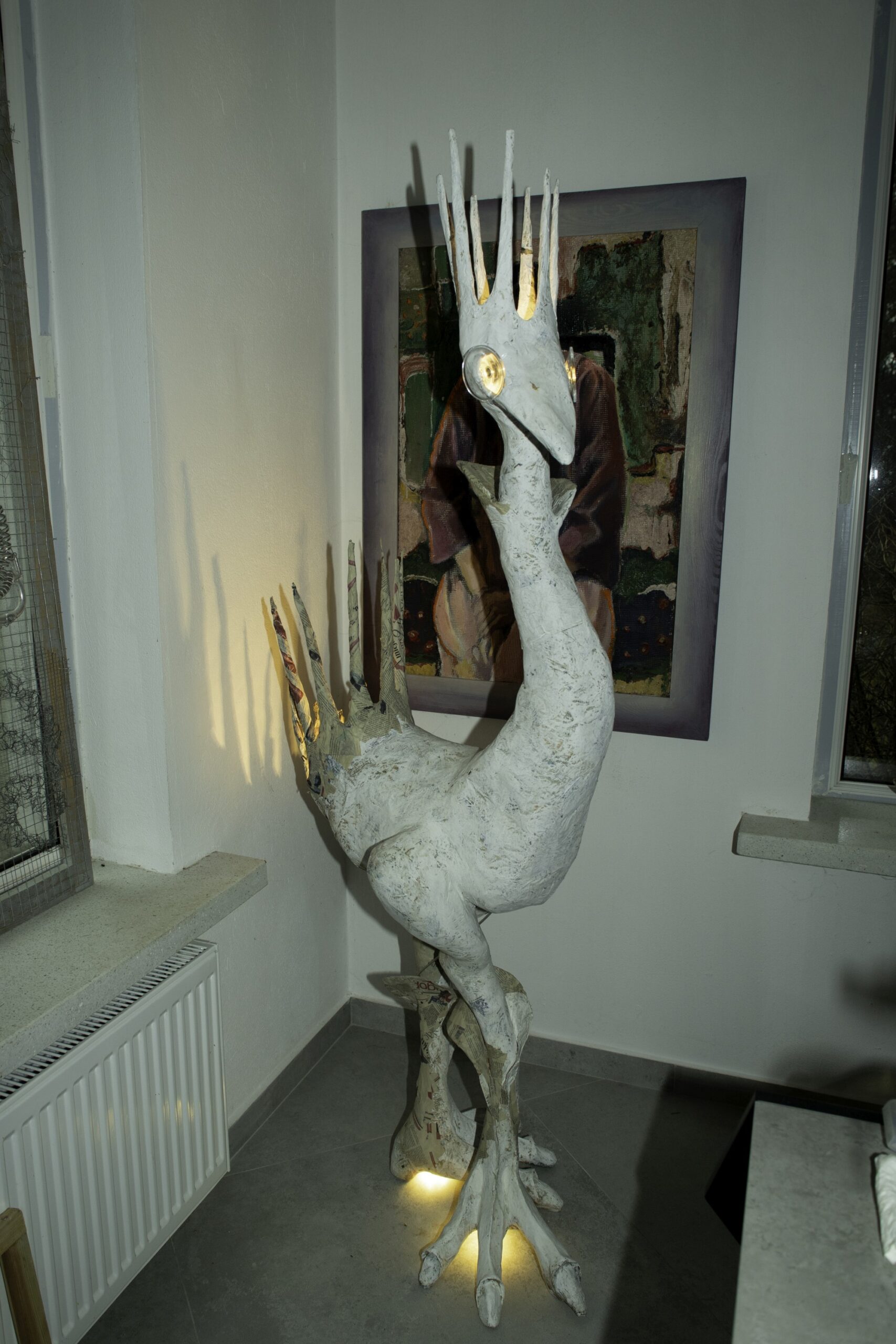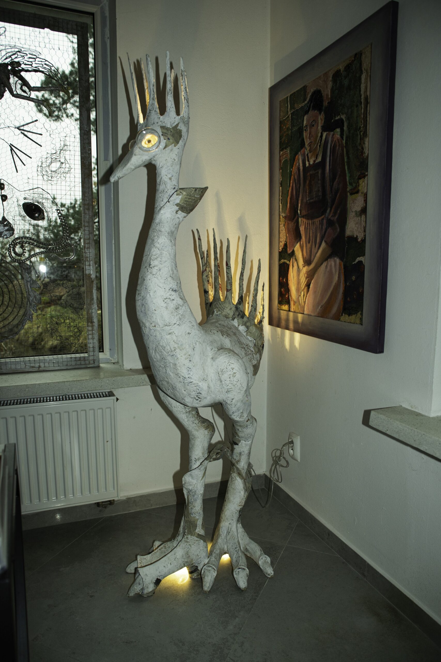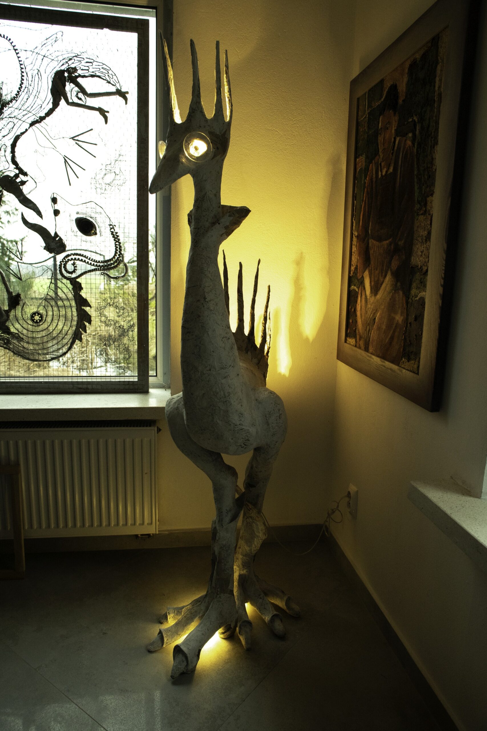 (D) auch aus Pappmaschee kann man Skulpturen – designe Lampen schaffen, die ungewöhnlich neue, föllig andere Raumatmosphäre bilden
