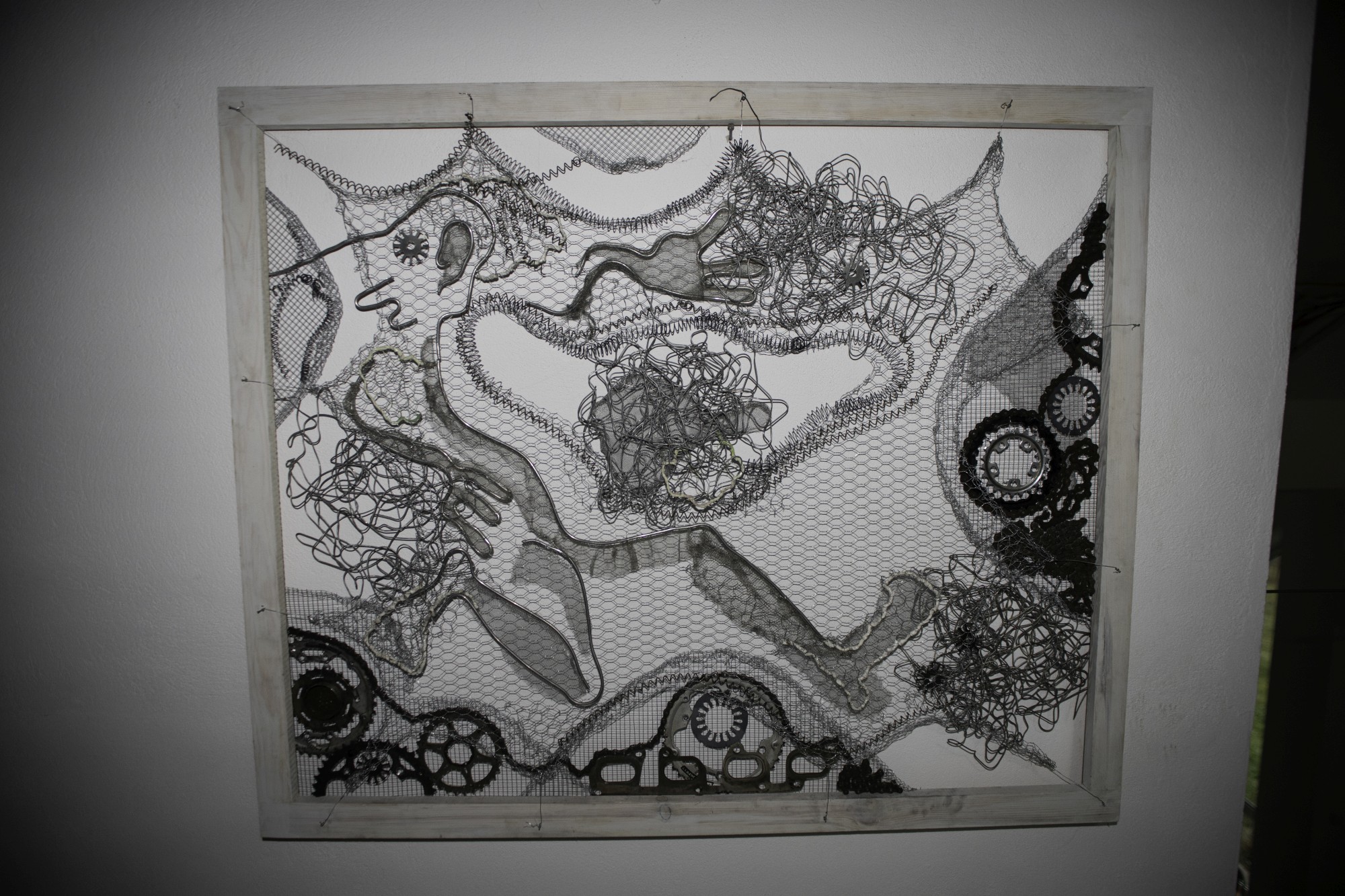 (D) Maschendraht, Fahrradzahnräder, Metallketten, Draht